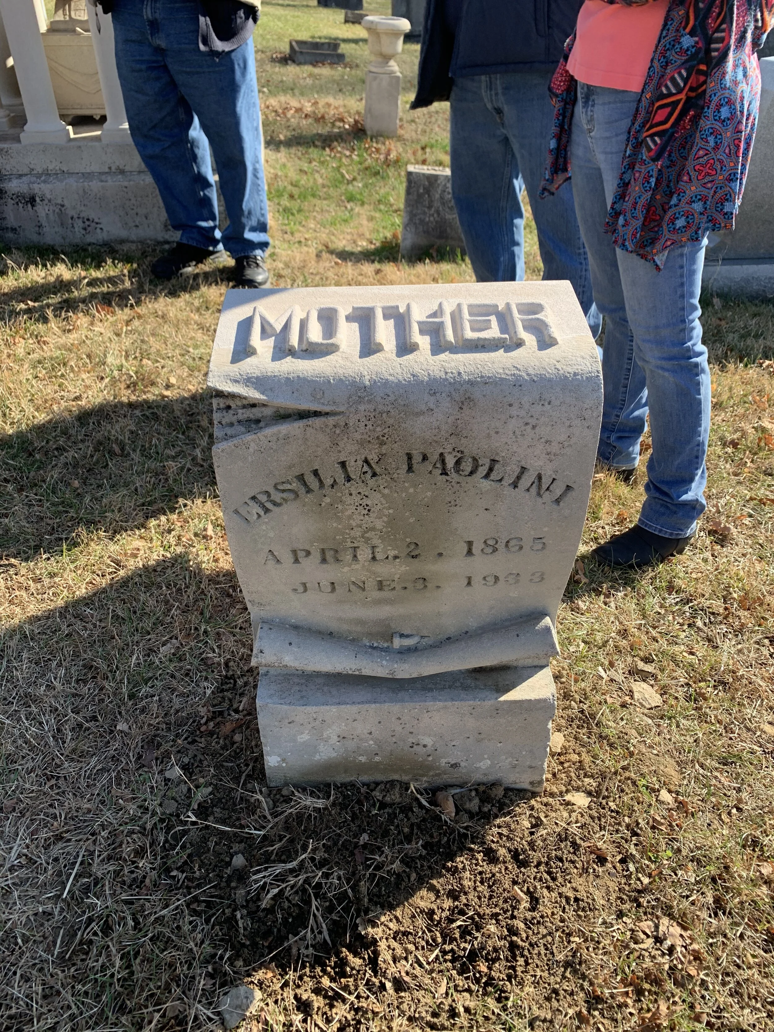 Green Hill Cemetery has some exceptional examples of stone artistry. Maintaining the cemetery and the special stones and monuments found there is challenging and at times expensive. The cemetery received a 2020 Challenge Grant from the Lawrence County Community Foundation helping them repair the Paolini Temple monument and family headstones. With no family in the area any longer to care for the markers, that responsibility falls to the cemetery.